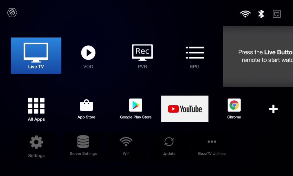 BuzzTV 4 App Improved User-Interface is sleeker and 2x faster than previous versions. BuzzTV 4 features an intuitive channel list page, quick access to categories and one-button access to your favorite shows. Brand new Video on Demand (VOD) grid design allows faster navigation to scroll through your movies faster than ever.